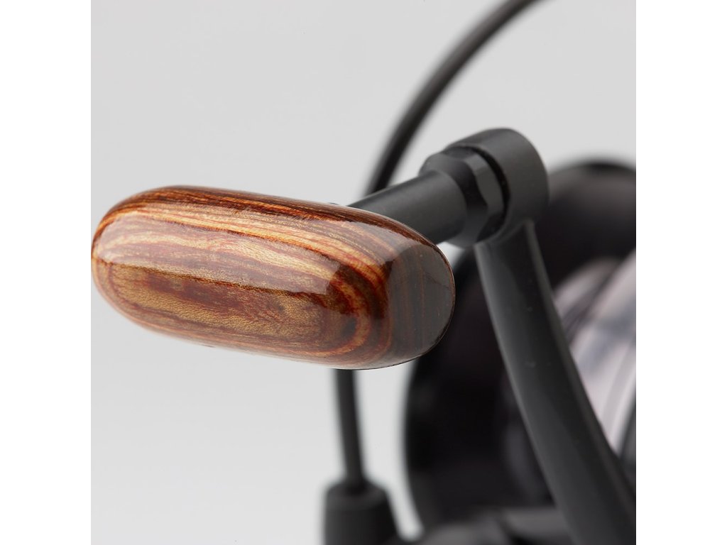 AVENGER BF Elegantní naviják v nenápadném designu s matně černým tělem, který nabízí unikátní vlastností, jako je pevná konstrukce převodů, rychlá brzda, funkce Bite & Fight, naše mazivo Dura Grease a elegantní dřevěná koncovka kličky.
