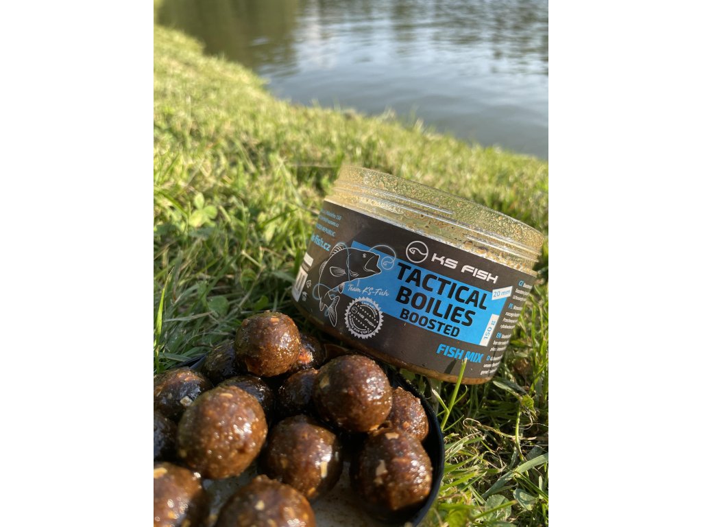 Tactical boilies v sobě snoubí letité zkušenosti spojené s lovem trofejních ryb a nejkvalitnější ingredience, které ryby milují. Boosterované boilies jsou vytvořeny pouze z nejkvalitnějších rybích mouček a čerstvých vajec doplněné o nejlepší dostupná aromata. Díky složení našeho boosteru jsou pro ryby velice atraktivní a rády je přijímají! Všechny druhy boilies mají nutričně vyvážené složení, které je výživné pro rybu a zároveň nezatěžuje její trávení. Uchovávejte v suchu a chladu. Určeno pouze pro sportovní rybolov!