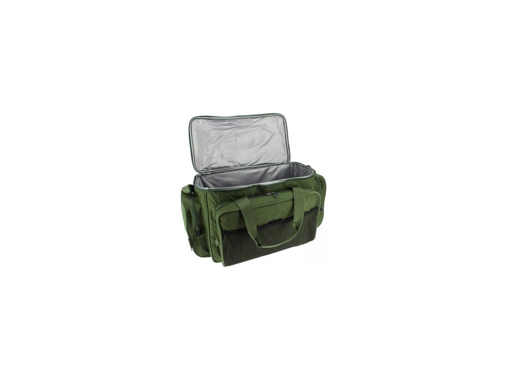 NGT přichází s novým nástupcem nejprodávanější tašky Green Insulated Carryall 909 a to v podobně velmi kvalitní, polstrované rybářské tašky v klasické zelené barvě s velkou síťovanou kapsou vpředu. Kvalitní a robustní zipy vám zaručí dlouhou výdrž a spokojenost. Hlavní kapsa je vypolstrovaná a vybavená částečnou termoizolací. Můžete tak udržet déle v chladu jak potraviny, tak třeba boilie nebo pelety. Polstrování je 1,5 cm silné. Drží naprosto dokonale svůj tvar, ale přitom jde složit téměř na plocho. Samozřejmostí je kvalitní polstrovaný popruh. Jako materiál byl použit voděodolný polyester 600D s PVC potahem. Taška je tak naprosto voděodolná.